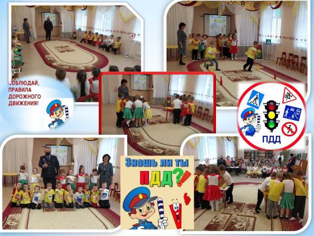 Дети в игровой форме закрепили знания о правилах дорожного движения, дорожных знаках. В гостях у ребят были Баба Яга и регулировщик, которые помогали ребятам вспомнить правила поведения на дороге.
