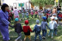 В Детском саду № 20 стало традицией в начале июня проводить праздник Сабантуй. В празднике приняли участие дети всех возрастных групп. Праздник подготовили воспитатели II младшей национальной группы Афандиева Л.М., Минахметова З.Р. и воспитатель по обучению татарскому языку Зиганшина Р.Я. В гости к нам за праздник заглянул сказочный герой – Антошка и татарская красавица – Айсылу. Ребята показали свою ловкость и умения в национальных играх «Кульяулыгым», «Бег в мешках», «Кто быстрее донесёт воду в пиалах», «Перенеси яйцо в ложке», «Перетяни канат», «Конные скачки», «Разбей горшок». Самым сложным для ребят, оказалось, попасть по горшку с закрытыми глазами, но и с этим испытанием они справились! А затем вместе с гостьей праздника – татарской красавицей Айсылу, воспитанники водили хоровод и танцевали под национальную музыку. Разгадывали множество интересных загадок от Айсылу. В заключении мероприятия организовали межнациональный флешмоб для малышей. Ребята веселились от души. Ведь много ли надо детям для счастья! Праздник удался на славу! И конечно же в конце праздника дети получили сладкое национальное угощение - хворост.