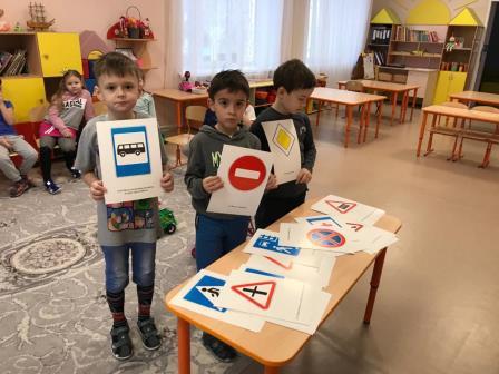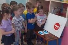 Дошкольники поиграли в игры: «Кто быстрее выложит светофор», «Стой, иди, прыгай», «Собери знак», «Это я», подвижные игры «Пешеход и автомобиль», «К своим знакам», а также отгадывали загадки, отгадками которых служили дорожные знаки. Воспитанники очень серьезно и внимательно слушали воспитателя (Потапову И. Г.) и пробовали под руководством взрослого соблюдать обыкновенные правила дорожного движения. Мероприятие пришлось по душе всем детям. Они получили море положительных эмоций. День закончился просмотром презентации «Я научился правильно вести себя на дороге».