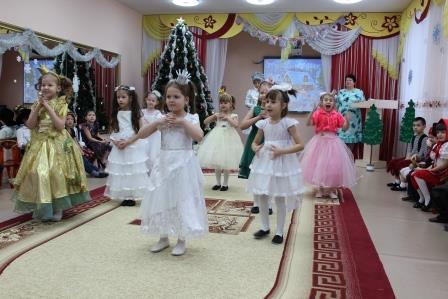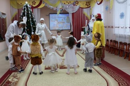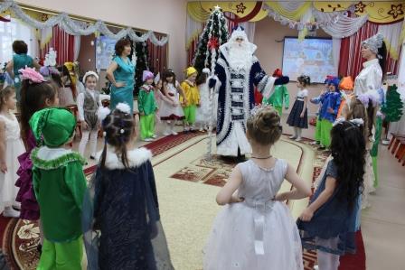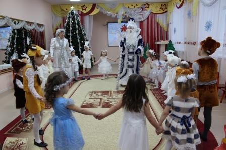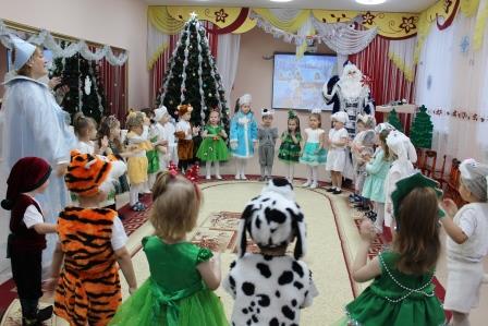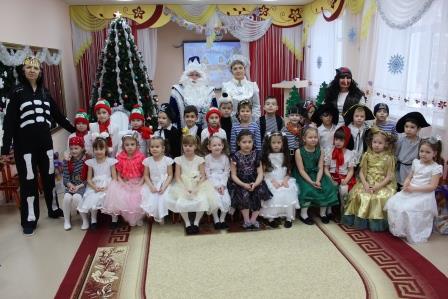 Первыми к нарядно украшенной ёлке пришли самые маленькие ребятишки. Новый год – время исполнения заветных желаний, и для малышей это была первая встреча с Дедом Морозом в стенах детского сада. И поэтому ожидание новогоднего праздника связано с предвкушением волшебства от встречи с главным героем и его внучкой. Дети окунулись в сказку, помогали героям, вместе с ними пели и танцевали вокруг красавицы елки. И их надежды оправдались. Педагоги, участвовавшие в новогоднем представлении, проявили себя великолепными артистами, показав все свое творческое мастерство, артистизм, задор и организаторские способности. С появлением Деда Мороза начался настоящий праздник с песнями и танцами, хороводами вокруг елки. А дети старшей и подготовительной группы окунулись в волшебный мир сказки, где Баба Яга, Кащей и Метелица показали, что добро всегда побеждает. С появлением Деда Мороза начался настоящий праздник с песнями и танцами, хороводами вокруг ёлки. Все воспитанники получили новогодние подарки от детского сада.