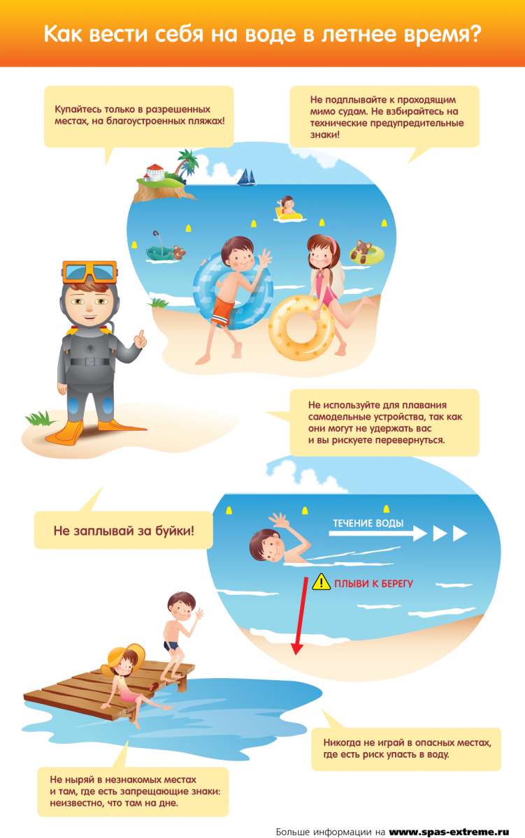 Не отплывайте далеко от берега, не заплывайте за предупредительные знаки.