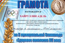 Поздравляем нашего воспитанника Хайруллина Аделя с победой в номинации "Юный олимпиец" во II муниципальной Олимпиаде по физической культуре.
