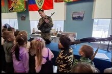 В конце занятия у нас прошла выставка военной атрибутики, мы все попробовали , удивились , что у военных есть рации, а телефонов нет. Когда наши мальчики вырастут, будут защитниками Родины, а девочки будут их лечить.