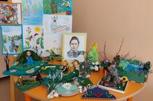В рамках тематической недели, посвящённой творчеству Габдуллы Тукая, организована выставка рисунков и поделок совместного творчества детей и родителей по произведениям великого татарского поэта.
