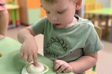 Мощным способом развития у детей умственной активности, творчества, художественного вкуса и многих других качеств, без которых невозможно формирование первоначальных основ социально активной личности является лепка. Лепка – это самый осязаемый вид художественного творчества. В последнее время очень популярным материалом стало соленое тесто. Тесто – это прекрасный, экологический, мягкий, пластичный и универсальный материал, который дает возможность воплощать самые интересные идеи и замыслы. Тестопластика обладает большим развивающим потенциалом. Малыши при знакомстве с новым материалом от души разминали, раскатывали, примазывали тесто к доске. Очень приятный на ощупь материал так и манил ребят поиграть с нею. Дети из соленого теста на первом занятии пробовали на доске путем раскатывания и придавливания мастерить смайлики. Также дети путем вдавливания пальчиками в диск из теста попробовали отобразить на ней мимику лица смайлика. На втором занятии ребята готовили путем раскатывания теста на доске разноцветные конфеточки для своих мам и пап.