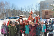 Балалар бакчасында күңелле кычкырулар, масленица шаярулары, җырлар, табышмаклар, уеннар һәм алсу коймак белән Майчабуны каршы алдылар. Һәр яшь төркеме балалары белән музыка залында бәйрәм күңел ачулары үткәрелде, аларда Скоморохлар, Аю, Кыш, Яз персонажлары катнашты. Балалар яз турында җырлар җырладылар, рус халык уеннарын уйнадылар, әйлән-бәйлән уйнадылар. Бәйрәм азагында һәммәсе урамга чыгып, тәмле хуш исле, алсу коймак ашадылар, рус халык җырларына биеделәр. Бәйрәм күңелле һәм шатлыклы булды!