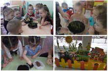 Наступила весна. Пришло время посадок. Огород на подоконнике в детском саду является очень приятным занятием, особенно зимой и весной, когда хочется посмотреть на цвета зелени: лук, петрушка, укроп и др. Нет ничего приятнее, когда первая весенняя зелень поспевает прямо у тебя на подоконнике или, распускаются листочки на веточках, поставленных в вазочку с водой. Природа на подоконнике – это ещё и возможность расширить знания дошкольников о том, как ухаживать за растениями в комнатных условиях, обобщить представления детей о необходимости света, тепла, влаги, почвы для роста растений, видеть результаты своей работы. Воспитанникам возрастных групп эта работа понравилась. Они с интересом участвовали в посадке, наблюдали и ухаживали за всходами, с удовольствием и нетерпением ждали, когда появится первый росток. А воспитатель Савочкина Г.З. проявив творчество, оформила сказочный мини-огород.