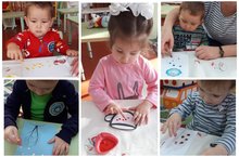 Воспитатели первой младшей группы, Савочкина Г.З., Хастутдинова Н.П., с начала учебного года проводят с малышами занятия, применяя нетрадиционные техники рисования (рисование ладошками, пальчиками, ватными палочками). Маленькие дети в силу возрастных особенностей довольно неусидчивы и нетерпеливы. Им трудно подолгу удерживать внимание. Нетрадиционные техники рисования – это как раз то, что нужно малышам: завораживающий процесс и яркий результат. Изобразительная деятельность с применением нетрадиционных материалов и техник способствует развитию у ребёнка: мелкой моторики рук, которая тесно связана со становлением речи, мышления, тактильного восприятия, пространственной ориентировки на листе бумаги, внимания и усидчивости, изобразительных навыков и умений, наблюдательности, эстетического восприятия, эмоциональной отзывчивости. После нескольких игр-тренировок на бумаге пальчиками возникает двигательный ритм. Этот ритм привлекает детей, становясь дополнительным стимулом для действий с краской и усиливая интерес к ним.
