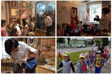 Лето- прекрасная пора для ярких впечатлений и экскурсий. Дети средней и старшей групп вышли с экскурсией в краеведческий музей нашего города. Сотрудники музея рассказали юным гостям о народных костюмах, о предметах быта, которые использовались в старину. Дети погрузились в историческую среду далекого прошлого. А во время пешеходной прогулки по улицам города ребята закрепили правила дорожного движения. Экскурсия была интересной и полезной, доставила ребятам много впечатлений.