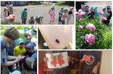 Все лето дети на прогулке с удовольствием рассматривали насекомых, любовались цветами на клумбах, а также через игры, беседы узнавали много интересного о природе, закрепляли правила поведения на природе, учились бережному к ней отношению. Бабочек-красавиц и других насекомых дети средней группы изобразили на бумаге в нетрадиционной технике рисования. Ну, а полученные знания дети старшей группы закрепили в викторине «Знатоки природы».