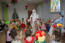 В сказочном представлении для детей подготовительной к школе группы было много сюрпризов, веселья и волшебства. Ребята пели песни, читали стихи, водили хороводы, играли в игры-забавы. Баба-яга и Черт, неожиданно появившиеся на празднике, придумывали разные хитрости, чтобы помешать ребятам веселиться. Но Дед Мороз со Снегурочкой вместе с ребятами не дали им испортить новогодний праздник. Праздник получился волшебным и незабываемым!