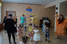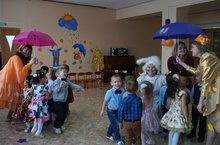 Сегодня в ДОУ прошел праздник осени в средней национальной и старшей группах. В гости к детям пришла Осень. Но потом неожиданно появилась Слякоть и заколдовала Осень. Дети не расстерялись и своими песнями, танцами, играми смогли вернуть Осень на праздник. В конце праздника Осень щедро одарила детей своими гостинцами.