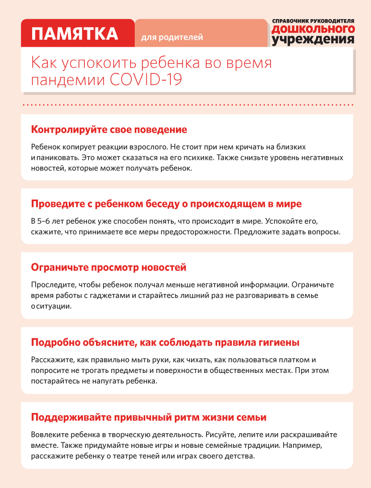 Памятка для родителей "Как снизить тревожность у детей во время пандемии COVID‑19"