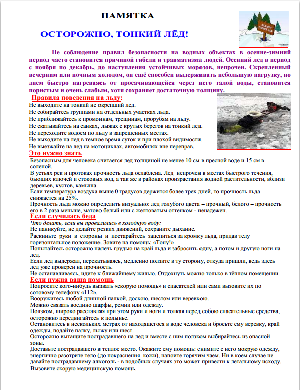 Памятка для родителей "Осторожно, тонкий лед!" о безопасности на льду в осенне-зимний период