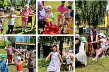 Богатая культура нашего многонационального края дает большие возможности для воспитания и образования подрастающего поколения. У каждого народа есть свои традиции, праздники, игры. Одним из значимых и больших праздников в нашей республике считается Сабантуй (праздник плуга). Сабантуй - это веселое празднование окончания полевых и посевных работ, на котором не утихают национальные песни и пляски, шуточные конкурсы и спортивные состязания. В детском саду уже стало многолетней традицией проведение фольклорного праздника «Сабантуй». Ребята показали свою ловкость и умения в национальных играх «Эй, дружок, продай горшок», «Бег в мешках», «Бег с ведрами», «Перенеси яйцо в ложке», «Перетяни канат». Самым сложным для ребят, оказалось, попасть по горшку с закрытыми глазами, но и с этим испытанием они справились! У маленьких участников Сабантуя надолго останутся незабываемые впечатления об этом красивом национальном празднике. Күпмилләтле халкыбызның бай мәдәнияте үсеп килүче буынны тәрбияләү һәм тәрбияләү өчен зур мөмкинлекләр бирә. Һәр халыкның үз традицияләре, бәйрәмнәре, уеннары бар. Безнең республикада иң мөһим һәм зур бәйрәмнәрнең берсе-Сабантуй (сабан бәйрәме). Сабантуй-кыр һәм чәчү эшләренең тәмамлануын күңелле бәйрәм итү, анда милли җырлар, биюләр, шаян конкурслар, спорт ярышлары тынмый. Балалар бакчасында «Сабантуй»фольклор бәйрәмен уздыру инде күп еллар дәвамында традициягә әверелде. Балалар «Эй, дус, чүлмәк сат», «Капчык киеп йөгерү», «Чиләк белән йөгерү», «Йомырканы кашыкка күчерү», «Аркан тарту» милли уеннарында үзләренең җитезлекләрен һәм осталыкларын күрсәттеләр. Балалар өчен иң авыры-чүлмәккә ябык күз белән эләгү икән, әмма бу сынауны да алар башкарып чыктылар. Сабантуйда катнашучы нәниләрнең бу матур милли бәйрәм турында онытылмас тәэсирләр калачак.