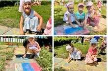 12 июня наша страна отмечает важный государственный праздник — День России, который символизирует день рождения современного государства, суверенитета и процветание страны. На площадке детского сада прошел флешмоб рисунков на асфальте «Я – частичка России!». Дружная атмосфера и солнечный день способствовали активному творчеству ребят и созданию ярких рисунков. Вскоре темно-серый асфальт заиграл всеми цветами радуги: на нем появились праздничные поздравления с Днем России, флаг и герб, цветы, солнце и дома. Яркие, красочные рисунки были наполнены миром и добром.