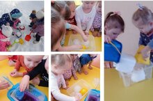 Во второй младшей прошла экспериментальная деятельность со снегом и льдом. Экспериментирование – эффективный метод познания закономерностей и явлений окружающего мира. В процессе эксперимента идёт обогащение памяти ребёнка, активизируются его мыслительные процессы, так как постоянно возникает необходимость совершать операции анализа и синтеза, сравнения, классификации и обобщения. Воспитанники группы познакомились со свойствами снега и льда, узнали, как получить из снега воду, узнали, почему «нельзя есть снег», также ребята познакомились со льдом, отгадывали загадки, узнали о свойствах льда, чем опасен лёд, если не соблюдать осторожность. Воспитатель вместе с детьми, провела опыты: «Как образуется снег», «Тёплый сугроб», «Снежные цветы», «Почему снег легче песка». В результате экспериментально-опытной деятельности ребята научились понимать, почему происходят многие природные явления. Дети с удовольствием наблюдали за всем происходящим в процессе эксперимента.