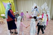 Воспитанники национальной группы познакомились с праздником Бишек туе, с особенностями татарской национальной культуры, с татарскими национальными костюмами, особенностями орнамента. Бишек туе (бишек — колыбель, туй — праздник) у татар родинный обряд, символизирующий принятие новорождённого в общество и наделение его жилищем (колыбелью). Устраивался обычно на 40-й после рождения ребёнка день. Приглашаются на этот праздник мулла, родственники, дети. Младенца укладывают в колыбель с пожеланиями здоровья. Гости приносят сладости, выпечку и подарки, желая ребёнку богатой и счастливой жизни. Молодая мама для всех соседей и родственников становилась самым дорогим человеком, в этот период самые вкусные яства были для нее и она была на самом почетном месте.