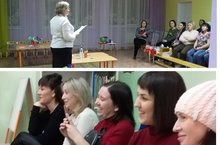 Музыкальный руководитель Сергеева Ирина Владимировна провела мастер-класс с педагогами «Нетрадиционные приемы в развитии музыкальности дошкольников». Она предложила игры, упражнения, которые можно использовать на занятиях и в повседневной жизни для развития музыкальных и творческих способностей у детей. Чем раньше ребенок воспримет гамму разнообразных впечатлений, чувственного опыта, особенно в таком виде деятельности, как движение под музыку, тем более гармоничным, естественным и успешным будет дальнейшее развитие ребенка и, возможно меньше будет проблем у наших детей с развитием речи, внимания, памяти, мышления, формирования красивой осанки. Воспитанники эффективнее воспринимают музыку, когда она воздействует в комплексе с движением, словом.