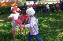 Дети собрались после летнего отдыха. Все выросли, загорели, отдохнули и пришли в свой родной детский сад. Начинается новый учебный год: занятия, беседы, праздники, помогающие лучше познать окружающий мир, чему – то научиться, узнать себя, определить свои интересы. В нашем детском саду первый день нового учебного года прошёл, как всегда, ярко и эмоционально. Педагоги превратились в сказочных персонажей, а воспитанники путешествовали по стране знаний, где их ждали веселые игры и задания, а также встречи с Сказочными героями. Они веселили ребятишек на празднике, веселой музыкой, зажигательными танцами, оригинальными конкурсами, играми и задорным смехом. День прошел ярко, насыщено и увлекательно.
