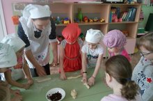 Замесили тесто мы с самого утра, и поставили его подниматься. Как только тесто подошло, дети с интересом приступили к работе.