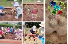Сегодня в нашем детском саду прошёл День песочных построек. Лето – прекрасная пора для полноценного развития детей. Столько возможностей кругом: вода, трава, цветы, песок – самый любимый материал летнего периода у всех детей. Ребята выкладывали песочные миниатюры, строили сказочные замки, башни, горы, лепили животных. Песочное строительство – это не только забава и развлечение, но и развитие, особенный вид конструирования, который позволяет реализовывать широкий спектр желаний и интересов ребенка, а также развивать все познавательные функции: восприятие, внимание, память, мышление, речь и моторику. А занятия по пескотерапии создают у детей положительное эмоциональное настроение, развивают познавательный интерес, корректируют психосоматические нарушения. Маленькие «строители» почувствовали себя в процессе работы настоящими волшебниками. Они ходили друг к другу в гости, с интересом рассматривали постройки и обсуждали их.