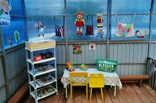 На верандах мы с ребятами проводим очень много времени, и именно поэтому к ее оформлению мы отнеслись с большой ответственностью. Все дидактические игры для развития детей сделаны из подручного материала своими руками. Наши веранды не только защищает детей от солнца и дождя, но и служит украшением площадки.