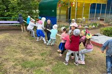 Сегодня в нашем детском саду прошел татарский народный праздник сабантуй. Мероприятие прошло на территории детского сада, которое по случаю украсили воздушными шарами и лентами. Педагоги детям рассказали об истории праздника, а потом они активно участвовали в татарских национальных забавах: перетягивали канат, прыгали в мешках, таскали ведёрки с водой на коромысле.