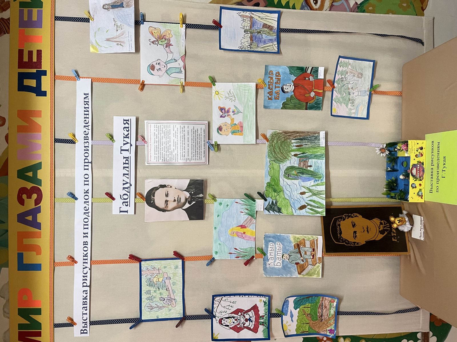 В фойе педагоги совместно с детьми и родителями организовали выставку детских работ по произведениям Г.Тукая.