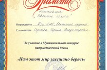 Сегодня наш детский сад принял участие в Муниципальном конкурсе патриотической песни "Нам этот мир завещано беречь" и победил в номинации "Звонкие голоса"