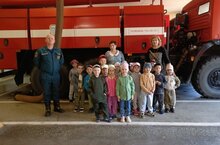 Сегодня воспитанники старшей группы сходили на экскурсию в пожарную часть. Уважение к пожарным, интерес к их делу являются стимулом для развития серьезного отношения к собственному поведению, препятствием для бездумных игр с огнем. Совсем по-другому усваиваются правила пожарной безопасности детьми, когда об этом рассказывают пожарные.