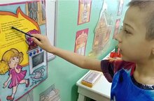 Сегодня ребята подготовительной к школе группы (воспитатель Ахметзянова З.М.) посетили кабинет основ безопасности жизнедеятельности (ОБЖ), в котором повторили правила действий при пожаре, правила поведения в быту, номера экстренных служб. Мосолов Дима по наглядному пособию прочитал ребятам одно из правил поведения в быту.