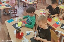 Сегодня ребята подготовительной группы были заняты созданием работ на тему "Ракета в космосе"