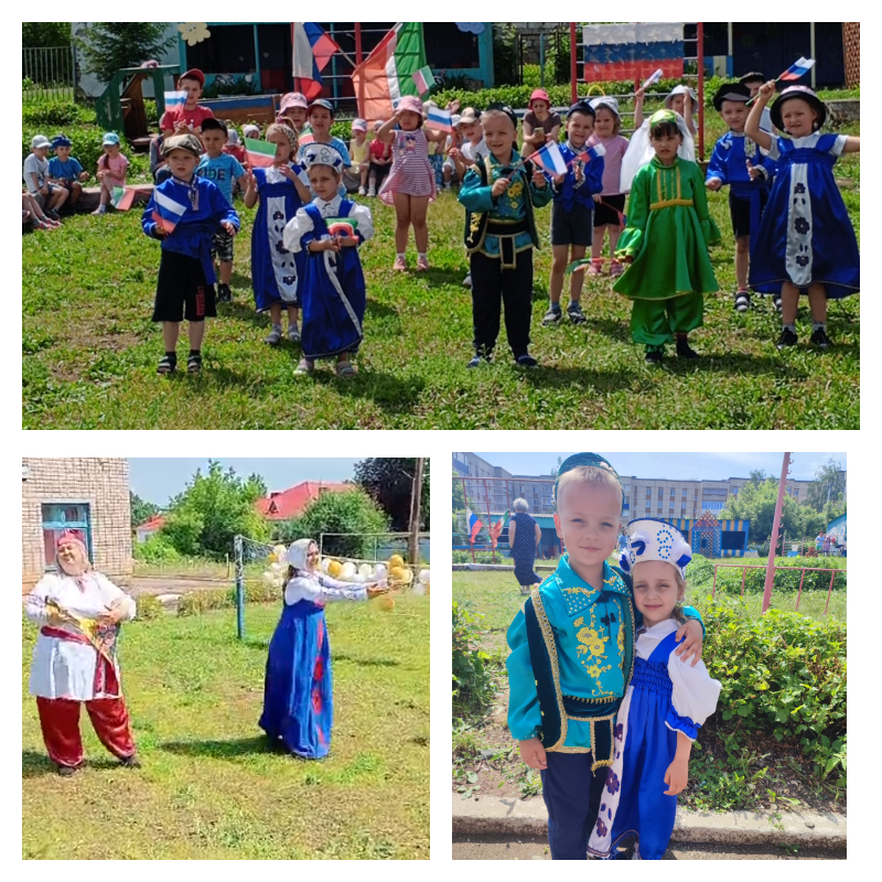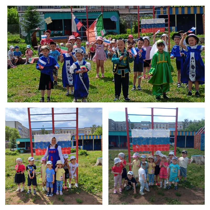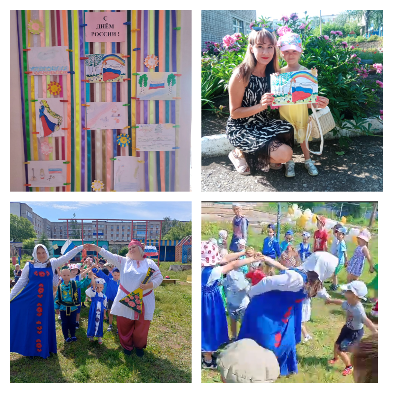 Мы отметили день рожденье нашей Родины 13 июня. Мероприятие для детей дошкольного возраста было проведено, с целью воспитания патриотизма и гражданской ответственности, чувства уважения и любви к своей Родине, к её традициям и обычаям. Вместе с педагогами дети, отгадывали загадки, слушали гимн Российской Федерации, ребята закрепили символы России . К ребятам приходили в гости Аленушка и братец Иванушка, вместе водили хоровод играли в народные игры. Мероприятие подготовлено старшим воспитателем Бабниковой Г.В., провели воспитатели Галимова Е.А., Хайрутдинова Г.Г., Ермишова Е.В. Денисова А.С. В преддверии празднования Дня России ребята вместе с родителями организовали выставку рисунков, а воспитатели с детьми сделали большой плакат символа России из детских ладошек.