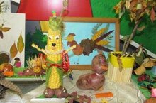 В нашем ДОУ прошла выставка поделок из природного материала. Участниками выставки были родители. Детям, в силу своего возраста, самостоятельно трудно выполнить поделку. Организуя такие выставки, мы преследуемым цель-вовлечение родителей в жизнь детского сада. Многие родители откликнулись на участие в выставке. Материалом для поделок послужили: шишки, листья, рябина, овощи, фрукты, семечки и многое другое. К сожалению, эти поделки быстро утрачивают свой вид. В результате получились оригинальные поделки.
