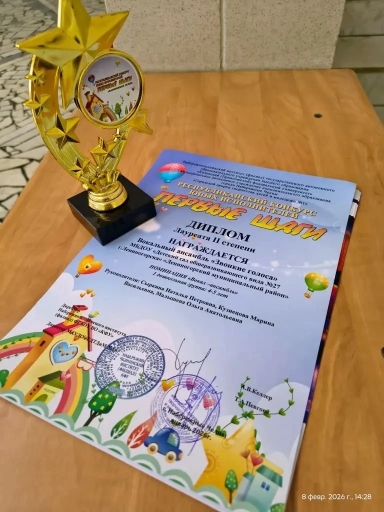 Вокальный ансамбль "Звонкие голоса" (дети старшей группы Алипова Вера, Шарафутдинов Карим, Зиганшина Арина, Никольские Владислав и Лев, музыкальный руководитель Сыркина Наталья Петровна) - Лауреаты 2 степени Республиканского конкурса юных исполнителей "Первые шаги". Мы вами гордимся, желаем творческих побед!