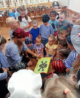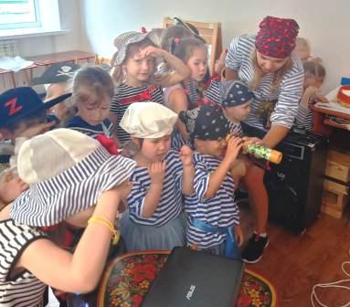 В детском саду состоялась игровая программа «Пиратская вечеринка». Пираты - одни из самых любимых детских героев. Эти морские разбойники поражают воображением, своей отвагой, жаждой приключений и опасной романтикой! Пиратская детская вечеринка - именно то место, где ребятня может сбросить накопившуюся энергию, вдоволь повеселиться, обогатить знания и развить сноровку.