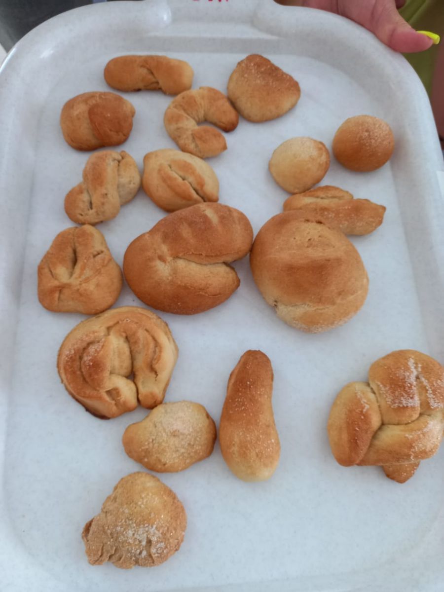 Со старшей и средней группой провели беседы с детьми о том, как выращивают хлеб, какой бывает хлеб, о пользе хлеба. Все это нашло отражение в творчестве ребят, они сами попробовали сделать дрожжевое тесто, из этого теста ребята сделали батон, хлеб и ватрушки. День получился насыщенный и интересный.
