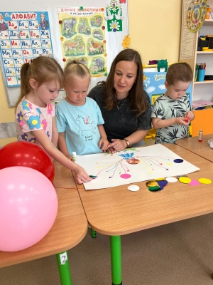 Сделали коллективную работу «Воздушные шары для куклы Кати», посмотрели мультфильм про Винни-Пуха и весело играли в подвижные игры