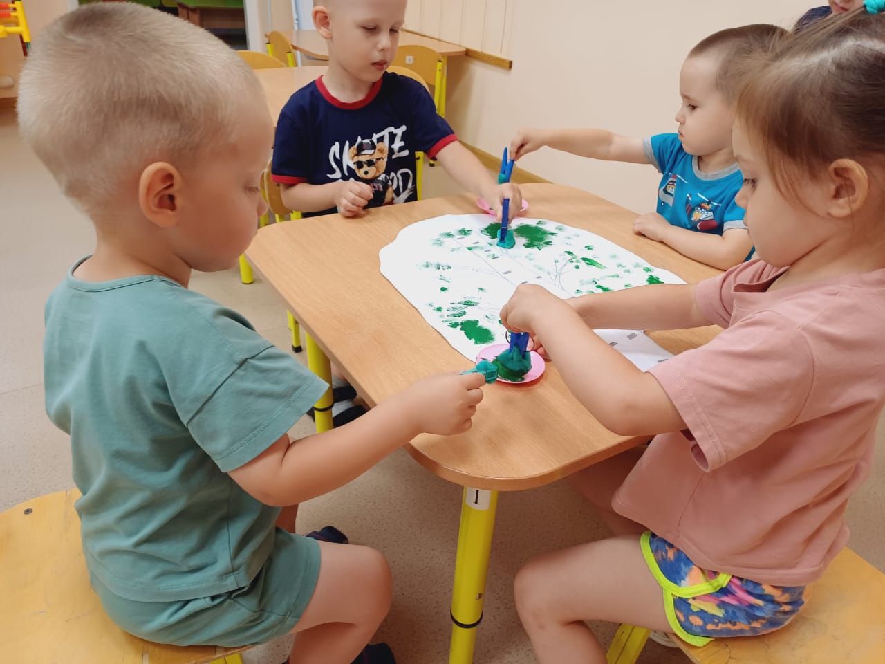 В первой младшей группе прошел тематический день "Путешествие в мир природы". Дети рассматривали иллюстраций по теме, играли в различные настольные игры. Малыши трудились в уголке природы, крупные листья протирали тряпочками. С удовольствием освоили нетрадиционное рисование с помощью поролоновой губки, выполнили коллективную работу "Березка".