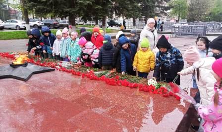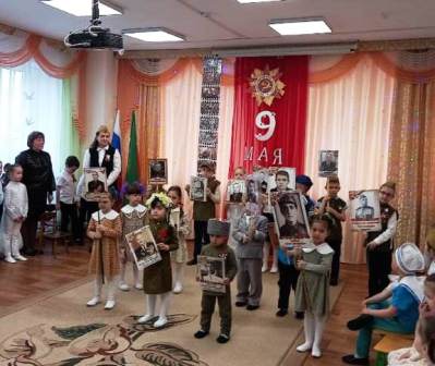 В преддверии 9 мая в детском саду прошли мероприятия, посвящённые 79- летию Дня Победы в Великой Отечественной войне. Воспитанники каждой группы показали инсценировку военной песни. Звучали стихи о войне, дети принесли портреты своих прадедов, воевавших в ВОВ. Воспитанники подготовительной к школе, старшей и средней групп возложили красные гвоздики к памятнику неизвестному солдату.