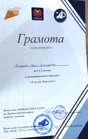Поздравляем Тимирову Марию Александровну с 3 местом муниципального конкурса по ПДД "А ну-ка, девушки!'