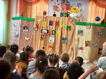 С большим восторгом дети смотрели кукольный театр "Кошкин дом", который показали воспитатели нашего детского сада.