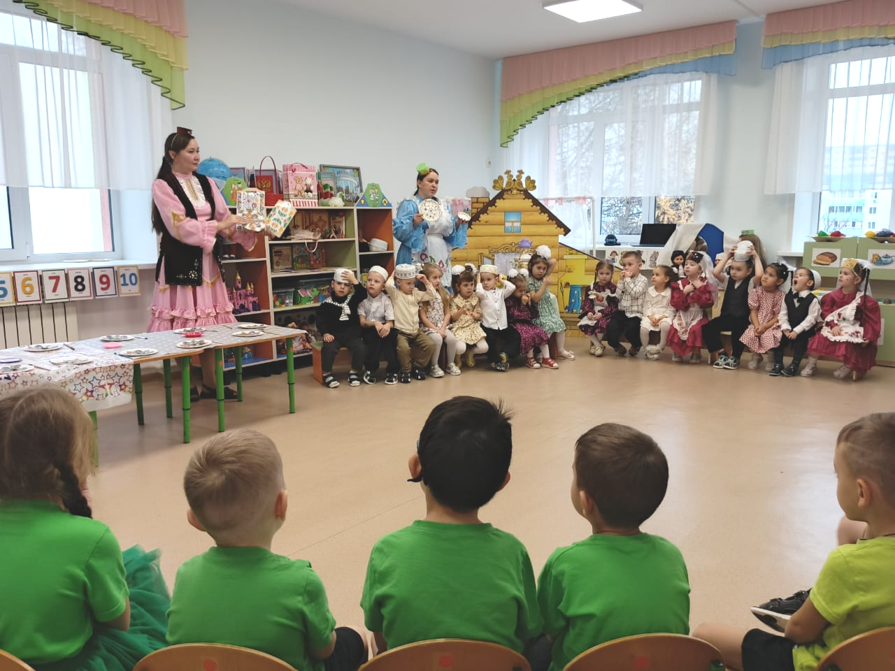 Воспитанники каждой группы (средняя, старшая, подготовительная к школе) представляли один из народов нашей многонациональной страны. Танцы, песни, стихи, традиции, национальные угощения татарского, русского и чувашского народов стали главным содержанием проекта.
