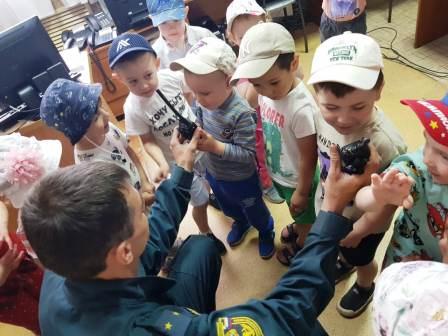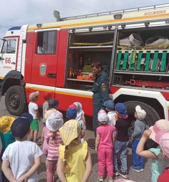 Поэтому с воспитанниками второй младшей и средней групп была проведена экскурсия в 66 пожарно-спасательную часть. Основная цель - вызвать интерес и уважение к профессии пожарного. В ходе экскурсии дети побывали в диспетчерской, узнали об имеющихся в распоряжении пожарной части машинах, увидели пожарные рукава, специальные костюмы и другие, столь нужные спасателям инструменты на пожаре, узнали об их назначении. С восторгом дети примеряли шлем и спасательную маску, используемую в задымлённых местах. Многие смогли посидеть за рулём настоящей пожарной машины и ощутить себя бесстрашным пожарным.
