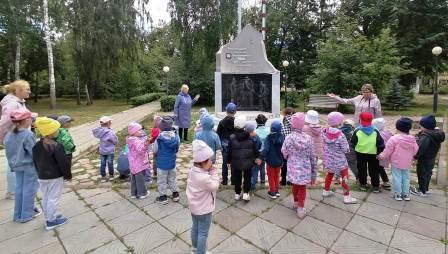 Сегодня дети второй младшей и средней групп совершили экскурсию к памятнику воинам-афганцам, ликвидаторам аварии на Чернобыльской АЭС, воинам-защитникам Великой Отечественной войны, герою России Дамиру Исламову. Воспитатели рассказали детям о героях войны прошлых и сегодняшних лет, почтили память героев минутой молчания.