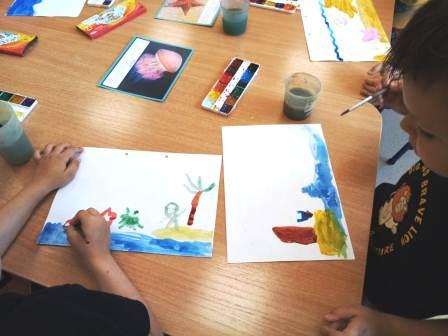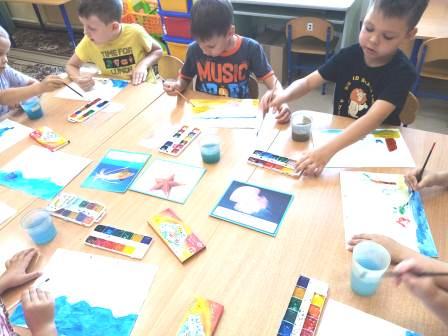 В старшей группе прошел тематический день "Путешествие по морю". Ребята знакомились с морскими обитателями, необычными растениями и водорослями. С удовольствием играли в сюжетно-ролевую игру "Путешествие на корабле". Свои впечатления дети отразили в продуктивной деятельности - рисовании.