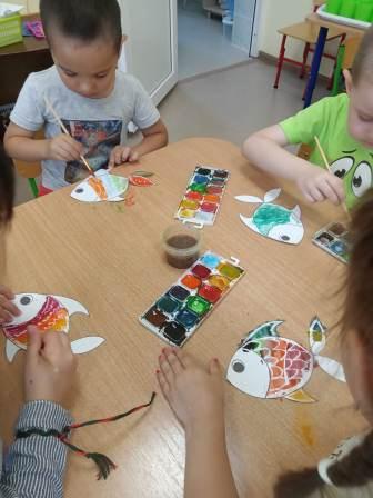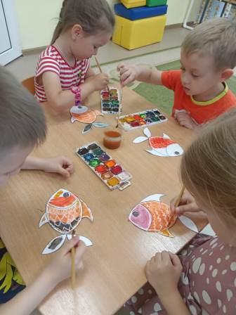 Все ребята показали свою сообразительность, наблюдательность, умение логически мыслить. В заключении в волшебном сундуке дети нашли сюрприз - рыбок, которых заколдовала злая Баба Яга, и они стали бесцветными. С помощью свечи и акварельных красок рыбки заиграли всеми цветами радуги.