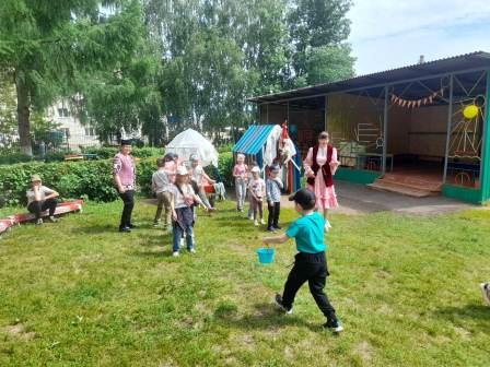 На празднике ребята смогли продемонстрировать свою силу, ловкость и смекалку. Были подготовлены игры: "Бой горшков", "Бег с ложками", " Бег с ведрами", "Бег в мешках", "Перетягивание палки ", "Верёвочка с призами". В заключении праздника организовали зажигательный танец. Праздник удался на славу!