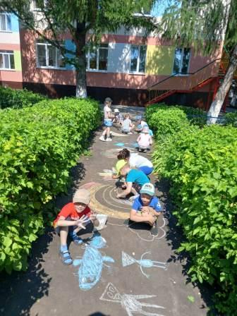 В нашем детском саду с 11 по 15 июля проходила «Неделя искусства». Каждый день недели был посвящён какому-либо виду искусства. Дети смогли побывать в роли художников, актёров, дизайнер-модельеров. Играли в подвижные и сюжетно-ролевые игры, игры-драматизации по русским народным сказкам. Детям очень понравилось, и они с интересом участвовали в постановке и просмотре сказки. Девочки и мальчики в старшей группе рисовали с элементами аппликации "Аквариум", в средней группе рисование «Одуванчик на полянке». Дети учились создавать монохромные композиции на цветочном фоне. Обогатили возможности рисования - создавать образ одуванчиков приемом нетрадиционной техники рисования (ватными палочками). С мелками на асфальте проявляли свое воображение и творчество. Погрузились в мир модельеров и устроили дефиле, а также попробовали себя в роли архитекторов, научились передавать в своих постройках особенности архитектурных зданий театра. «Неделя искусства» получилась насыщенной и интересной.